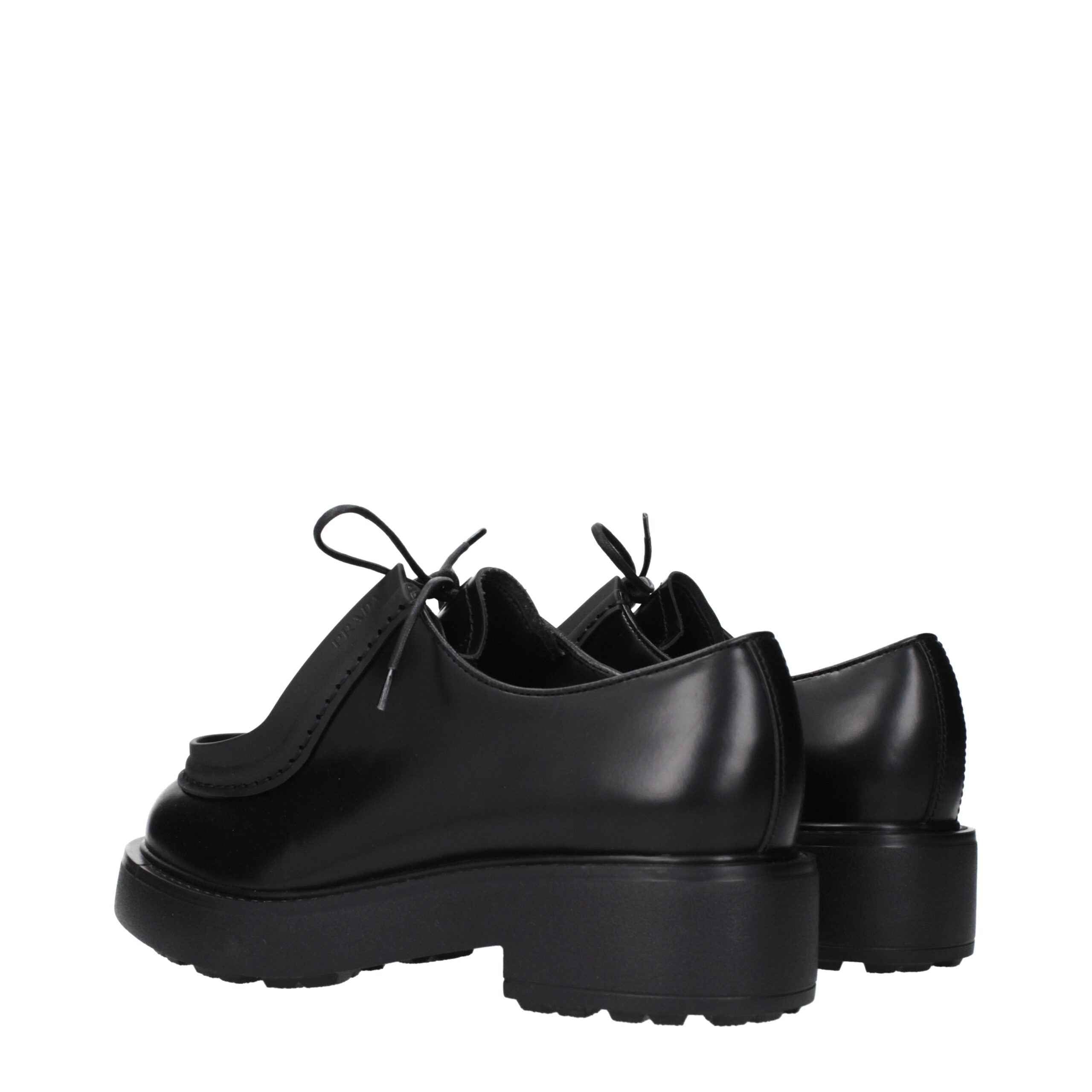 Prada Black Leather Oxfords And Derbies