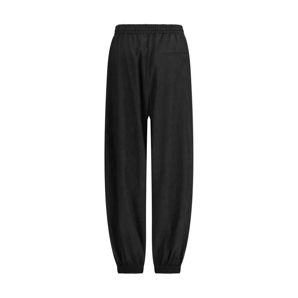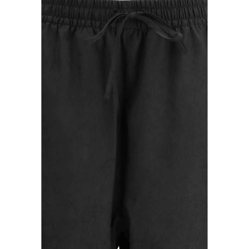 The balloon track Trousers by Rohe are crafted from a crinkled, textured fabric that adds depth and character to the design. An elasticated waistband with drawstring and elasticated hems create a voluminous, rounded leg silhouette, offering a modern and relaxed fit. Finished with front welt pockets, they combine a refined tailoring touch with a sporty, contemporary feel.