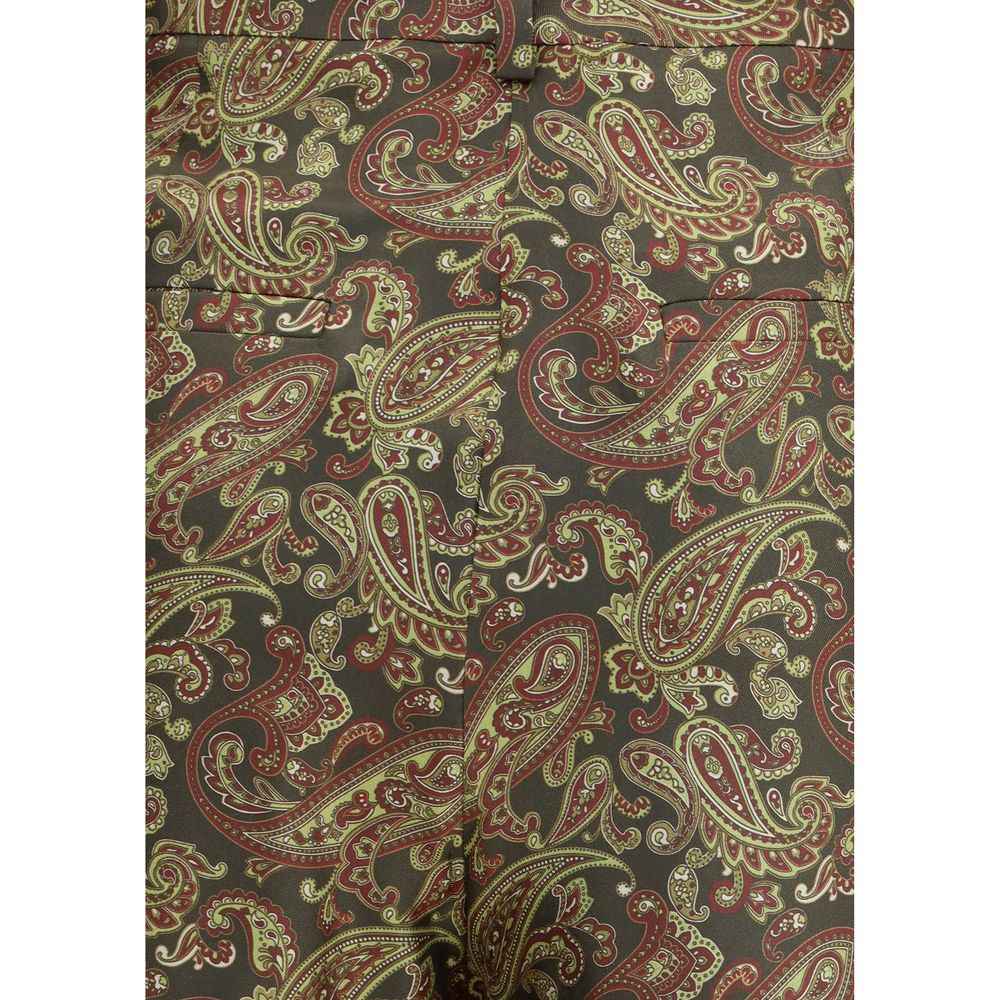Saint Laurent’s Paisley patterned silk Pants represent the perfect balance of bohemian elegance and sartorial sophistication. Made of pure silk, they are distinguished by a rich and sophisticated Paisley pattern that lends character to the design. The wide-leg silhouette and mid-rise waist ensure a fluid and feminine fit, while the front zip-and-button closure, belt loops and two side welt pockets complete the garment with functional and discreet details.