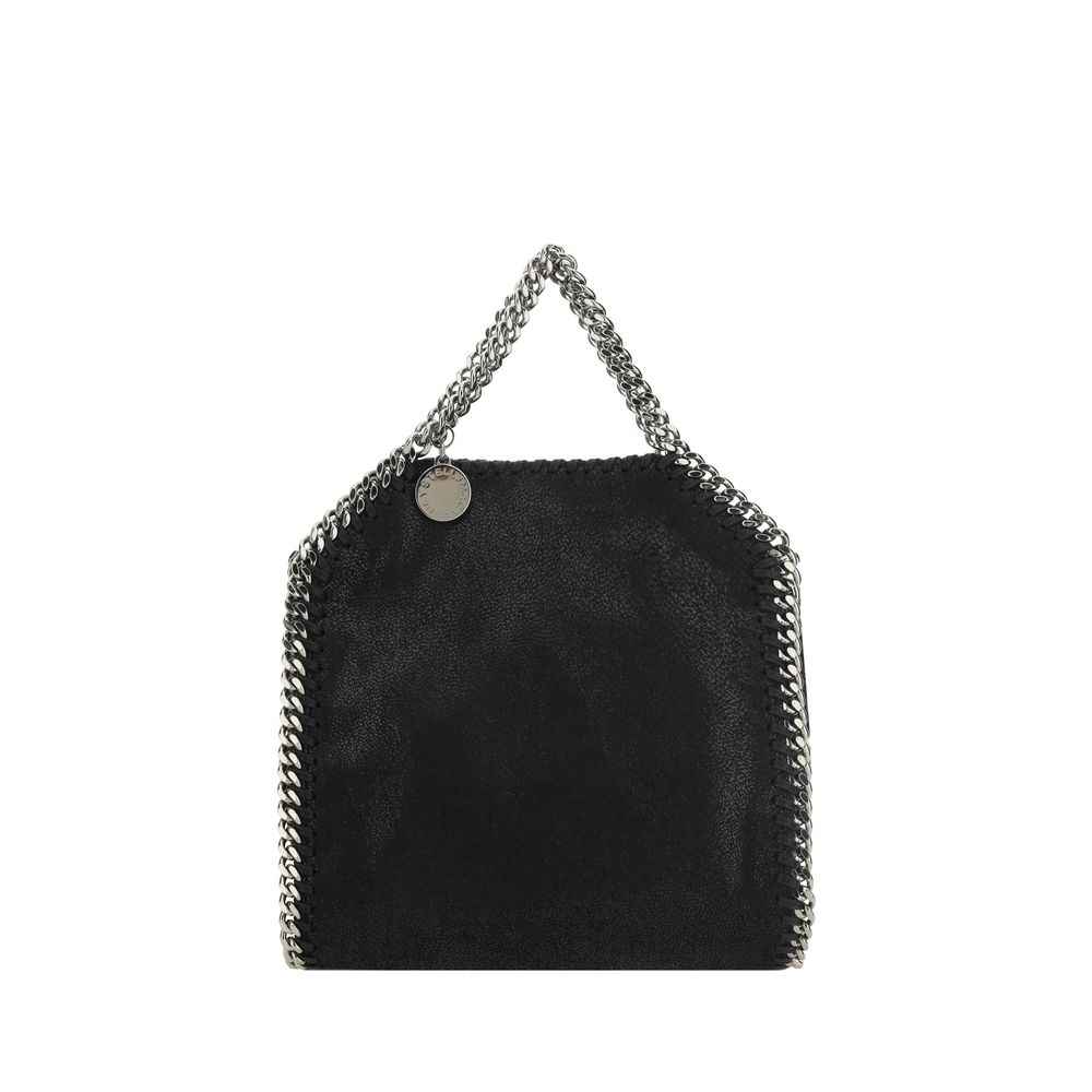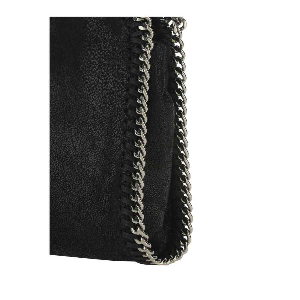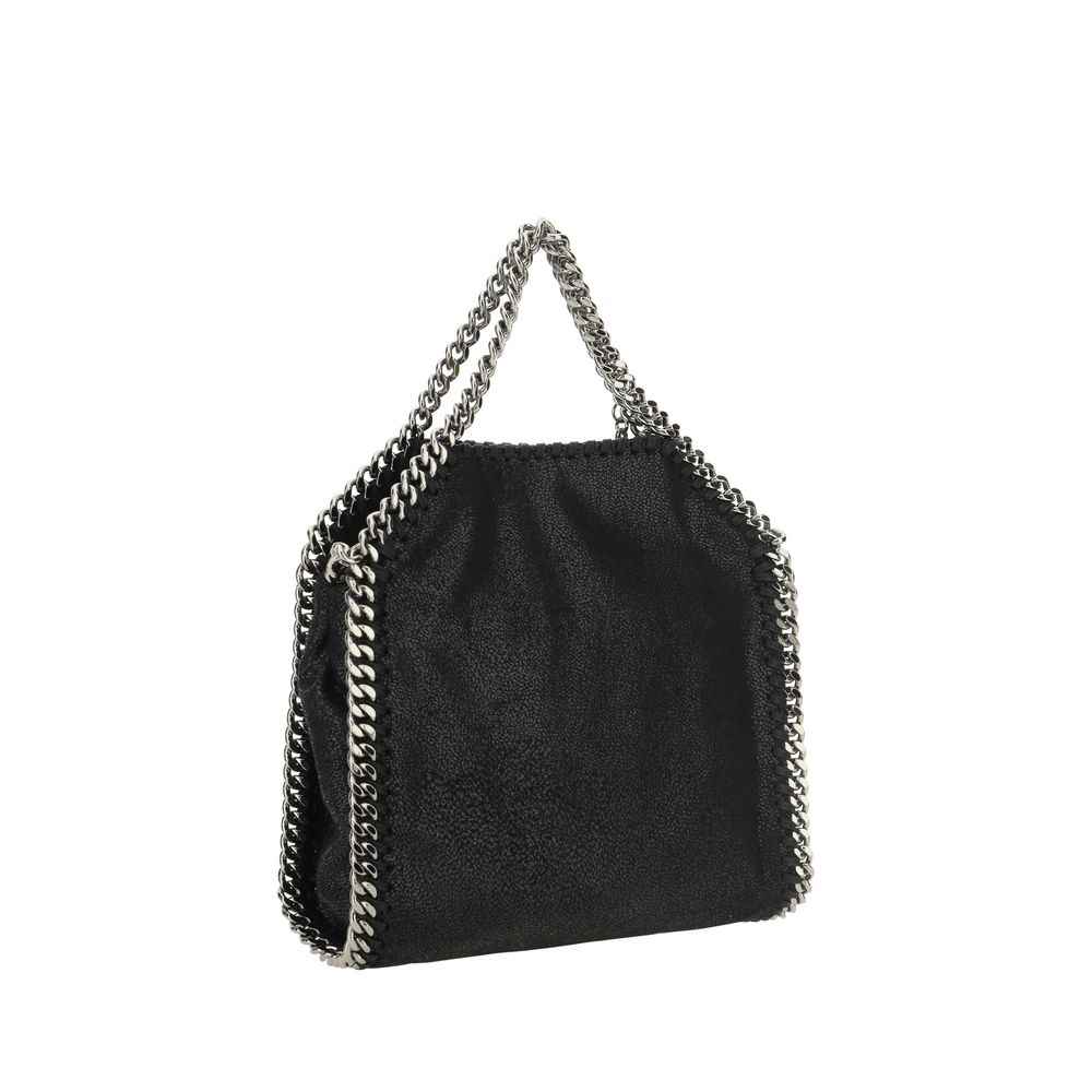 Tiny Shaggy Handbag by Stella McCartney with iconic faux leather design, enhanced with chain trim along the profiles and top handles also made of chain. It features an interior snap-button closure, a single compartment and a metal pendant at the base of the handle with the iconic engraved logo. A sustainable and recognizable accessory perfect for completing contemporary looks.
