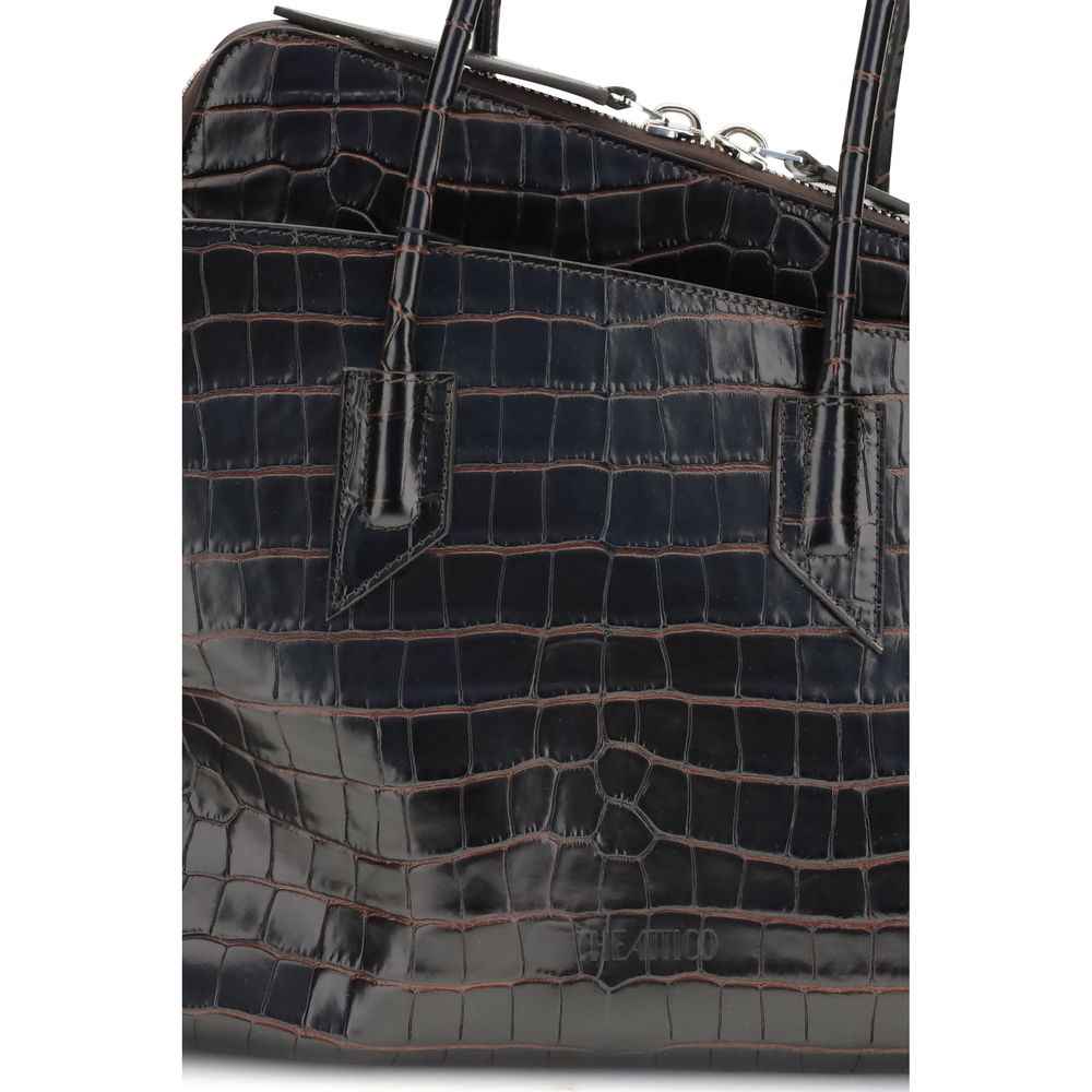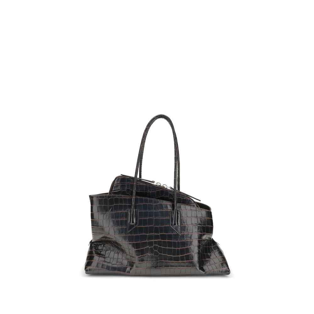 The La Passeggiata Medium Shoulder Bag features a refined crocodile effect and an asymmetric design that gives it a contemporary allure. Equipped with two round handles, it combines functionality and elegance in an accessory with a strong aesthetic impact.