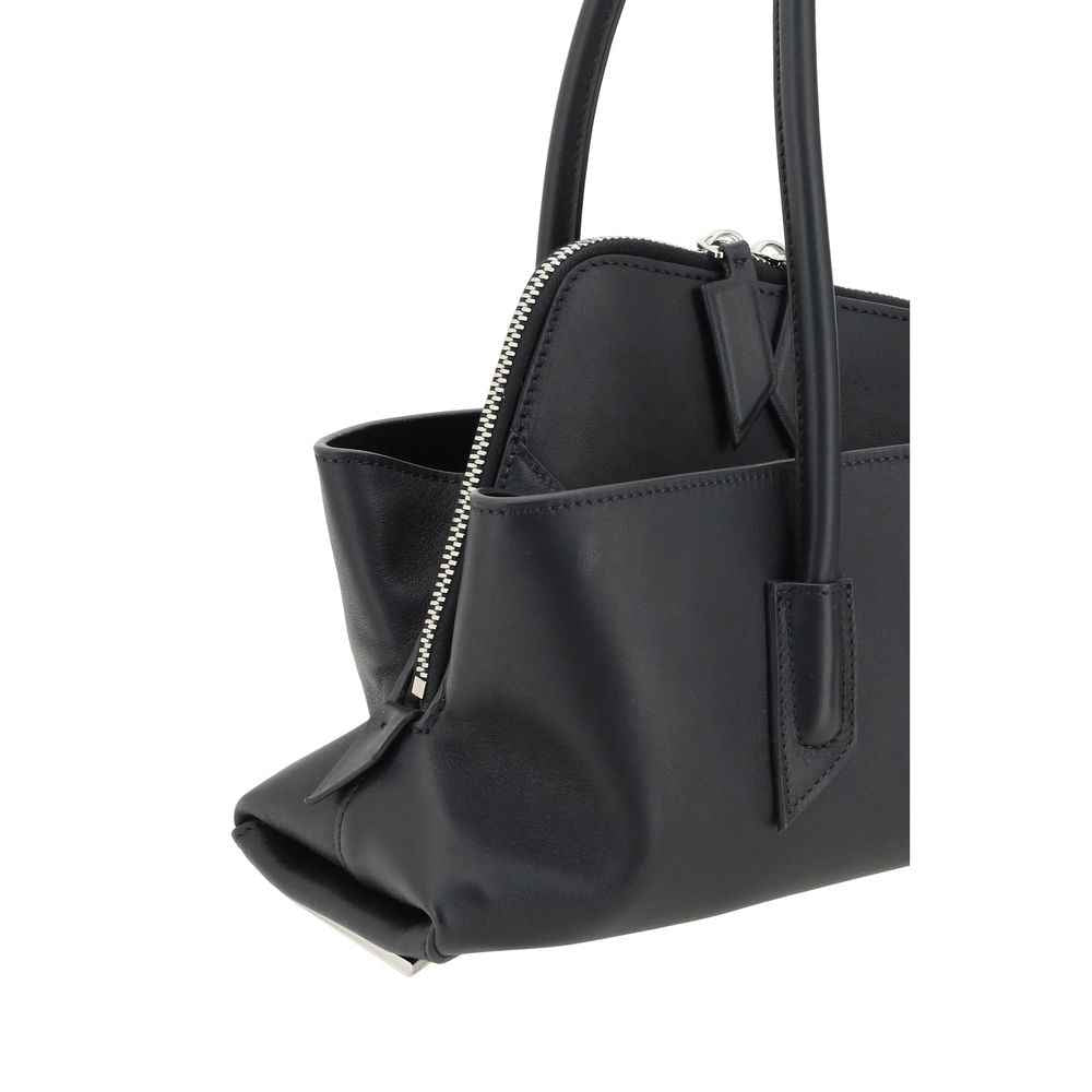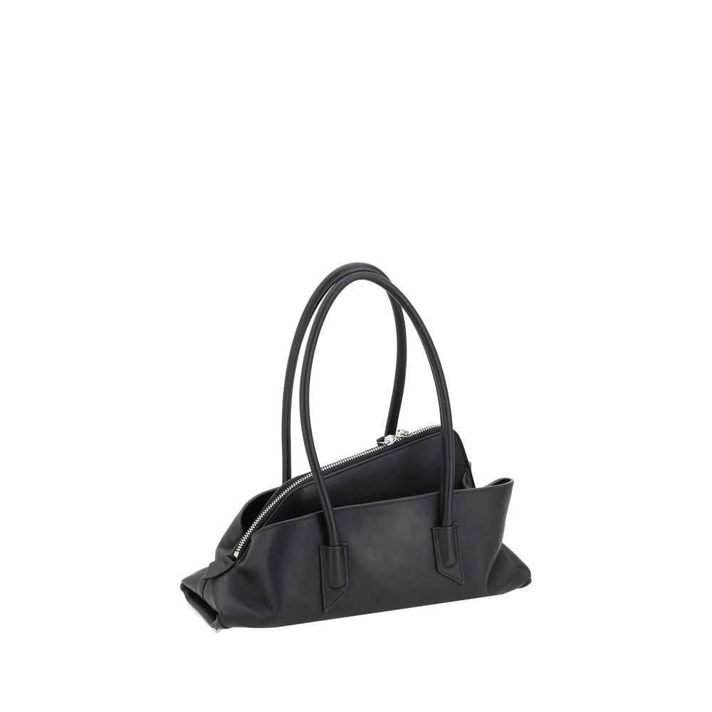 The La Passeggiata small leather Shoulder Bag by The Attico is an elegant and functional accessory perfect for adding a touch of sophistication to your look. Equipped with two top handles, it offers convenient and versatile portability. The top zippered closure provides security, while the iconic monogram press stud detail on the front adds a distinctive and recognizable brand touch. Metal feet at the base protect the bag and enhance its design, while the two welt pockets on the front and back provide extra storage space for essentials. A practical yet stylistically striking garment.