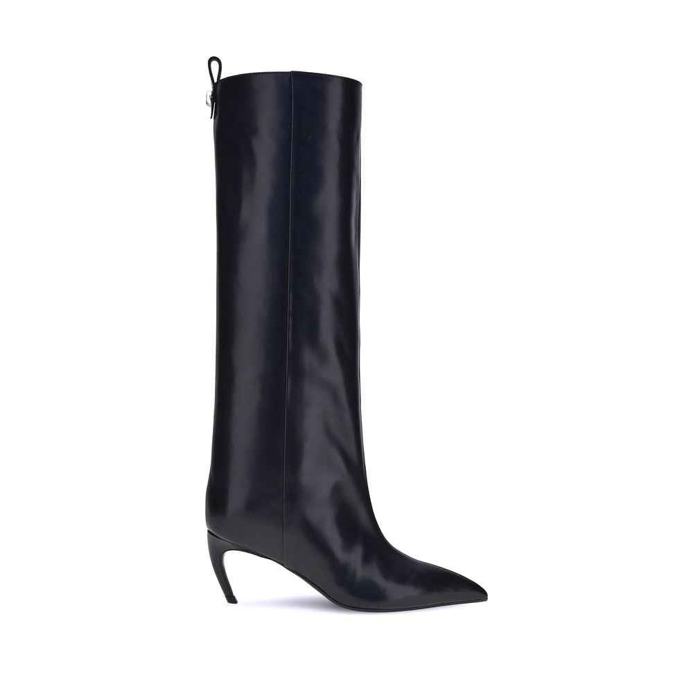 The High Leather Boots are made of high-quality smooth leather and feature a sleek, contemporary design. Embellished with a metallic logo detail on the back pull, they offer a distinctive and refined touch. The pointed toe design slims the silhouette, while the printed logo on the inside underscores the authenticity of the product. The distinctively designed heel adds character and makes these boots perfect for completing sophisticated looks with a modern accent.