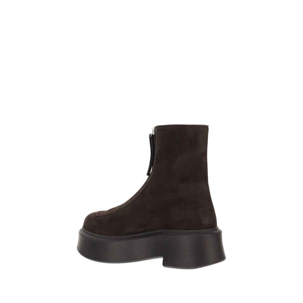 Calfskin Boots by The Row, front zipper closure, round toe, platform sole, suede design.