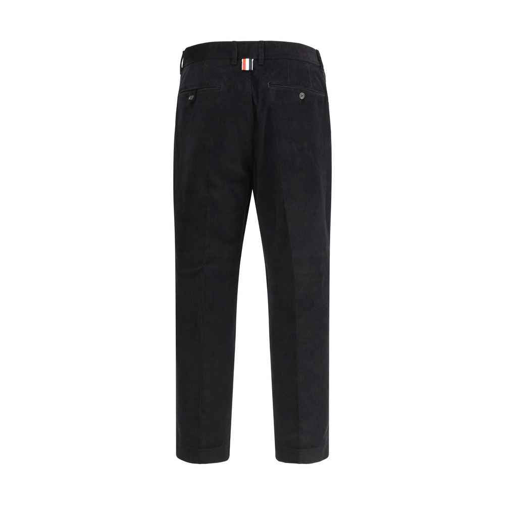 The corduroy Chino Pants by Thom Browne are a perfect blend of tradition and contemporary sophistication. Made of tightly woven corduroy, they give a rich texture and a clean, structured, sophisticated silhouette. Double-stitched seams and tone-on-tone trim add high-quality detail, while the tab and zipper closure offers a flawless fit. Back buttoned welt pockets and a striped grosgrain loop tab are distinctive details that echo the house’s celebrated style for a timelessly elegant look.