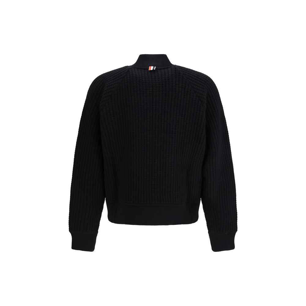 The Knit Bomber Jacket by Thom Browne features a front zipper closure and a ribbed crew neck, while ribbed cuffs and hem ensure a perfect fit. The side welt pockets are practical and discreet, while the honeycomb design lends a sophisticated texture to the garment, which combines elegance and comfort in a versatile, refined style.