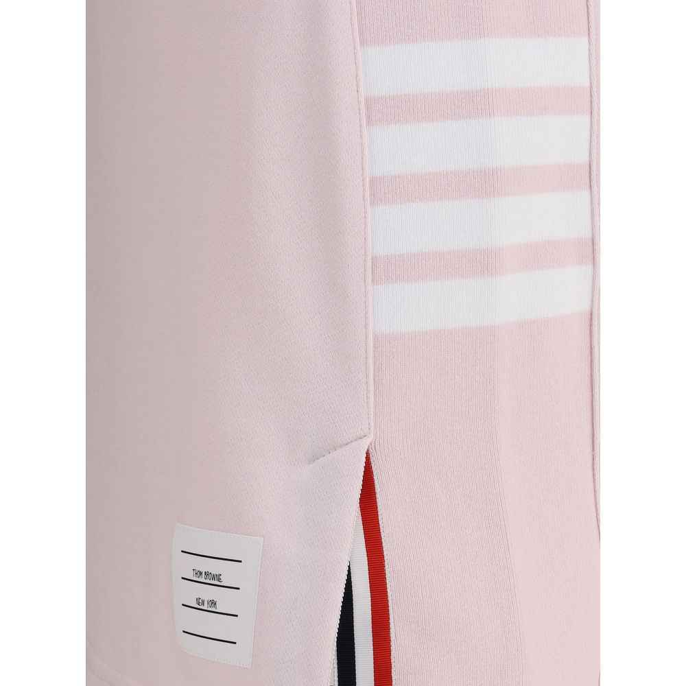 Cotton Mini Skirt by Thom Browne with an adjustable drawstring waistband for a customized fit. The style features two front slits decorated with the brand’s iconic multicolored bands, an appliquéd logo patch on the front and distinctive side bands that echo Thom Browne’s signature style.