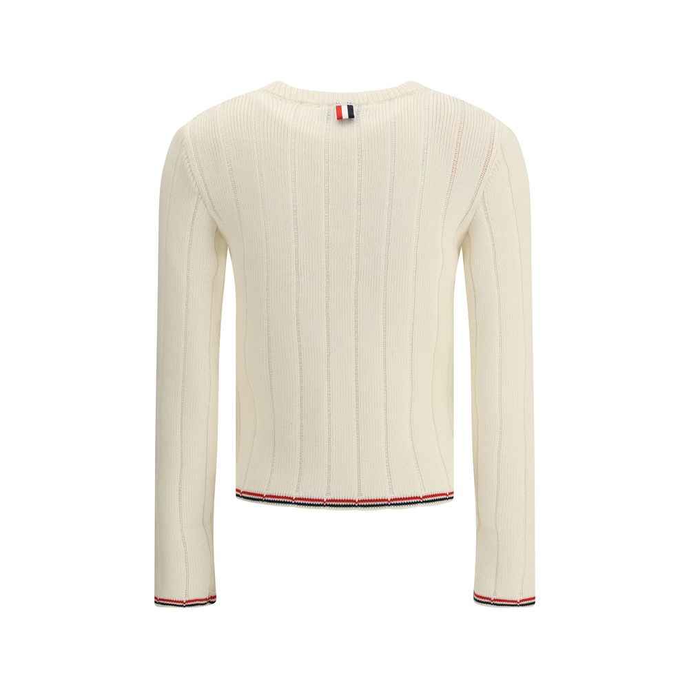 Thom Browne’s Ribbed Sweater features a ribbed crew neck and edges finished in the brand’s iconic tricolor colors, adding a distinctive and recognizable detail. An essential garment but with strong character, perfect for contemporary style.
