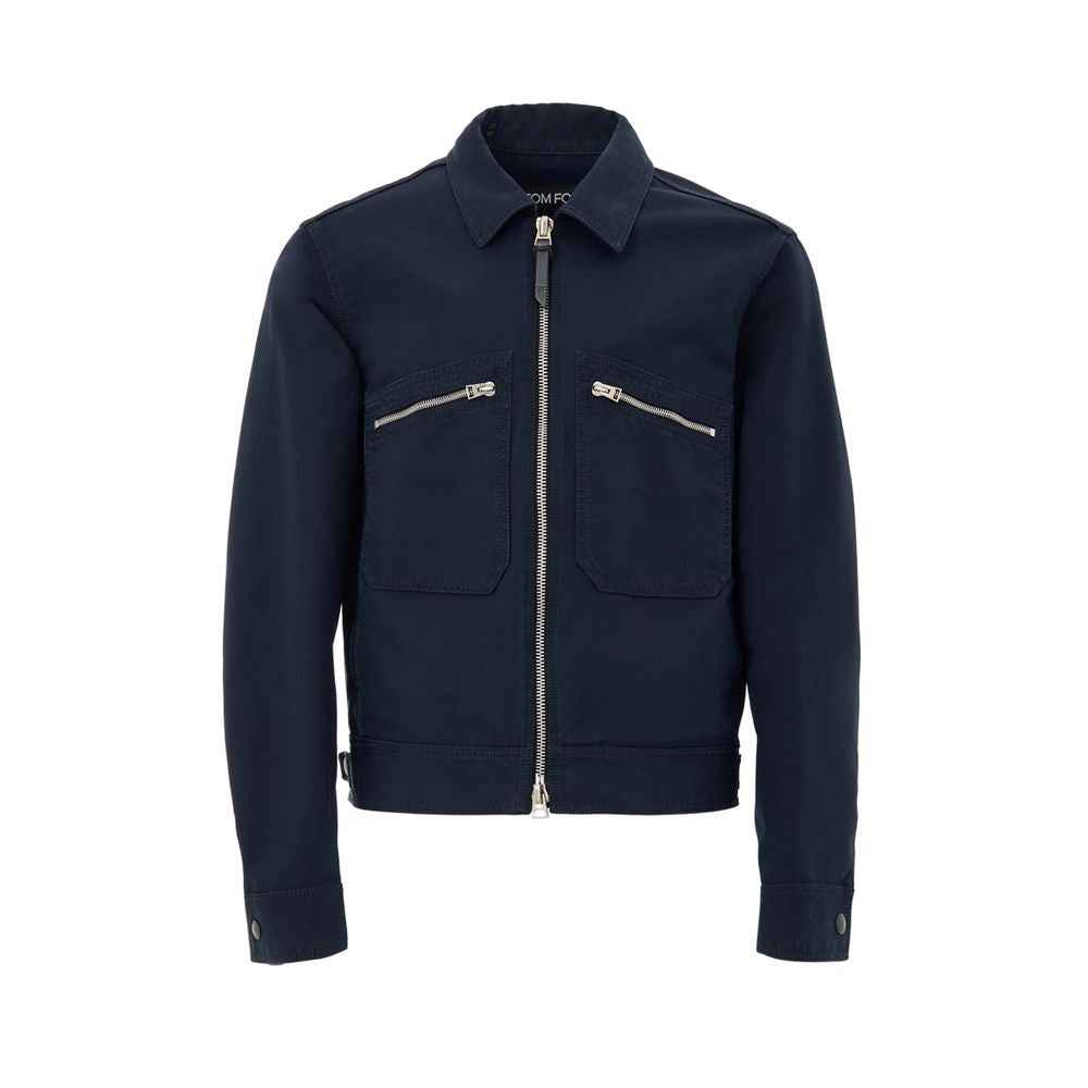 Front zip fastening, slider with leather detail, two front pockets closed with visible zip, two side welt pockets, waistband with buttons on the sides. On the back leather tag applied with tone-on-tone logo.