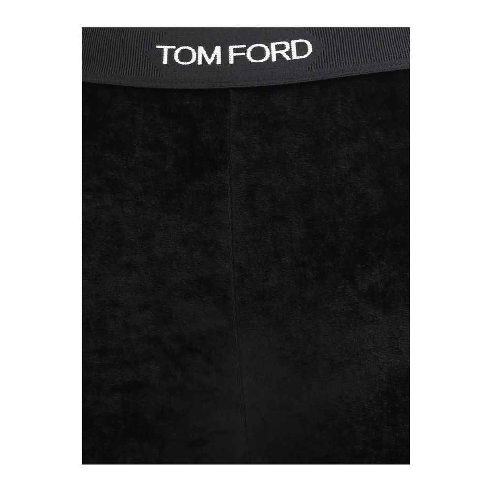 Lustrous Leggings by Tom Ford, velvet design, elasticated waistband with contrasting iconic brand monogram detail, slim fit,