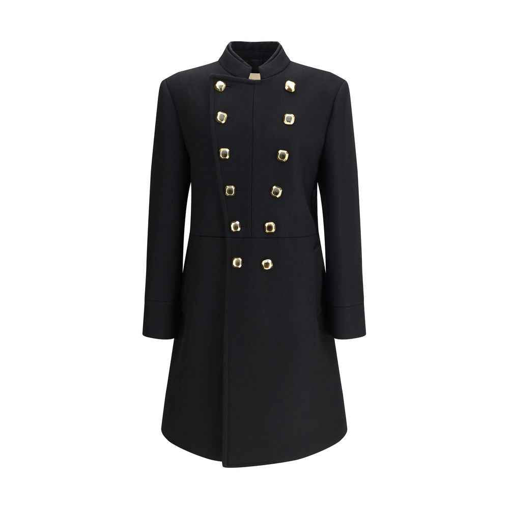 The double-breasted wool double Coat by Valentino captures the house’s timeless elegance. Crafted from fine double wool, it features a regular fit and a fully lined construction for comfort and sophistication. The design is completed by a Mandarin collar, double-breasted front, and two side pockets. A refined piece that embodies minimalist design and impeccable tailoring.