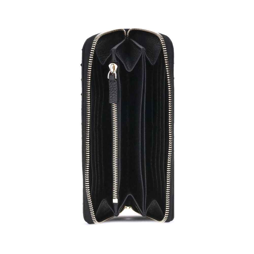 The Valentino Garavani leather Rockstud Wallet is a stylish and functional accessory. It features a lap zipper closure that offers security, while the iconic Rockstud studs applied on the perimeter add a distinctive and bold touch. The brand’s iconic contrasting monogram on the front enhances the design. Inside, there are three compartments to better organize personal belongings, along with a zippered coin purse for added convenience. A wallet that combines style and functionality in a sophisticated way.