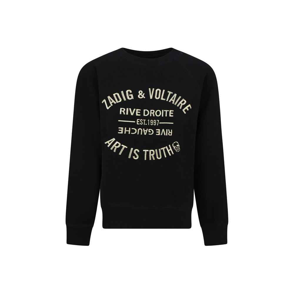 Cotton Sweatshirt by Zadig&Voltaire, ribbed crew neck, ribbed cuffs, ribbed hem, monochrome design, contrasting embroidered iconic brand monogram on front, regular fit.